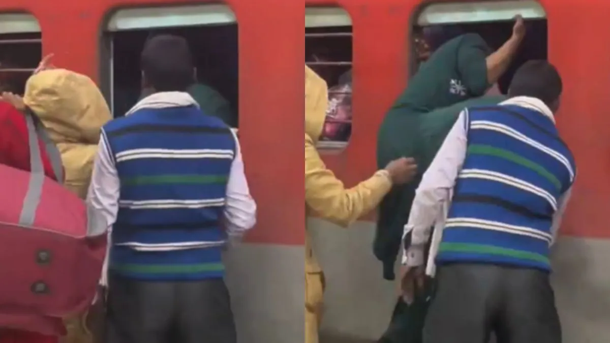 आप ने कभी ना कभी ट्रेन में सफर जरूर किया होगा। ट्रेन में सफर करते समय आपने देखा होगा कि कुछ खिड़कियों के बाद एक ऐसी खिड़की लगाई गई होती है जिसमें कोई रॉड नहीं लगाया गया होता है या फिर उसे पूरी तरह से खोला जा सकता है। यह इमरजेंसी विंडो होता है जिसे आपातकाल स्थिति में प्रयोग करने के लिए लगाया गया होता है। अगर ट्रेन में कोई हादसा हो तो लोग इस विंडो के जरिए भी बाहर निकल सकते हैं। मगर कुछ लोगों ने तो इसका इस्तेमाल ट्रेन में घूसने के लिए ही कर लिया। वायरल वीडियो में नजर आ रहा है कि कुछ लोग इमरजेंसी विंडो को जरिए अपने सामान और अपने बच्चों को अंदर पहुंचा रहे हैं।