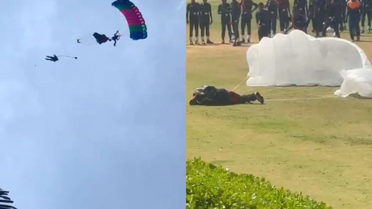 रिपोर्ट्स के मुताबिक, श्रीलंका की वायुसेना ने बताया कि इस हादसे में सेना और वायुसेना के चार पैराट्रूपर घायल हुए हैं। जिन्हें इलाज के लिए कोलंबो राष्ट्रीय अस्पताल में भर्ती कराया गया है। इस घटना का वीडियो सोशल मीडिया के हर प्लेटफॉर्म पर वायरल हो रहा है। वीडियो में आप देख सकते हैं कि हवा में कुछ लोग पैराशूट लेकर उड़ रहे होते हैं। तभी दो पैराशूट की अचानक से भिड़ंत हो जाती है और वे आपस में उलझ जाते हैं। पैराशूट के उलझते ही एक पैराट्रूपर नीचे जमीन पर धड़ाम से गिरता है। यह देख नीचे खड़े अन्य लोग उसकी मदद के लिए उसके करीब पहुंच जाते हैं। इसके बाद आगे के विजुअल में यह दिखता है कि दो और पैराट्रूपर्स अपने-अपने पैराशूट्स लेकर आपस में टकरा जाते हैं और वह उलझकर नीचे एक बिल्डिंग की छत पर गिर जाते हैं।
