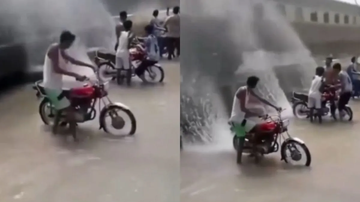 अभी जो वीडियो वायरल हो रहा है उसे इंटरनेट यूजर्स पाकिस्तान का बता रहे हैं। वीडियो में नजर आ रहा है कि कुच लोग एक ऐसी जगह पर अपनी बाइक के साथ खड़े हैं जहां थोड़ा सा पानी है। सभी ने बाइक को डबल स्टैंड पर खड़ा करके उसे चालू कर दिया है। वहीं पीछे ट्रेन की पटरी भी है जहां अगले ही पल ट्रेन आ जाती है। ट्रेन के आते ही सभी लोग बाइक को रेस देने लगते हैं जिससे पीछे वाला पहिया घूमने लगता है और पानी की छीटें ट्रेन और उसमें बैठे यात्रियों पर जाने लगता है। वीडियो सोशल मीडिया पर काफी वायरल हो रहा है।