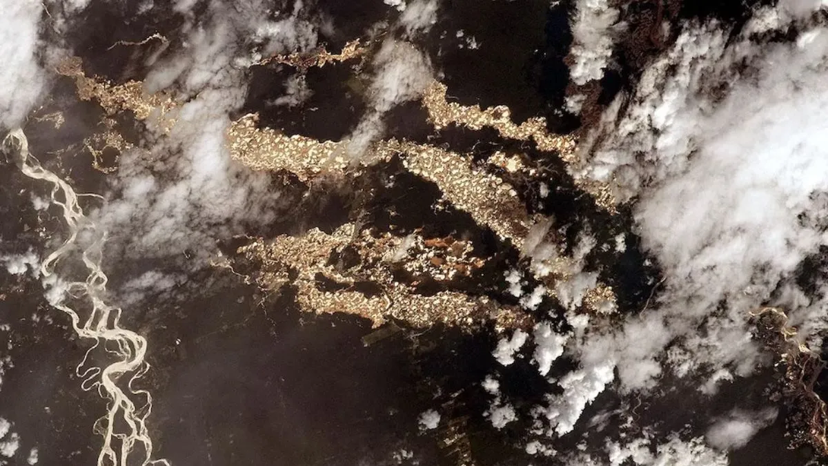 आपको बता दें कि सोशल मीडिया पर जो तस्वीरें वायरल हो रही हैं, उसे इंटरनेशनल स्पेस स्टेशन में मौजूद एक एस्ट्रोनॉट ने खींचा है। जानकारी के मुताबिक ऊपर से देखने पर यह सोने का जंगल जैसा लग रहा है, लेकिन यह सोने के अवैध खनन की कहानी को बयां कर रहा है। यह जंगल पेरू के माद्रे-दे-दियोस प्रांत के अंतर्गत आता है। इस इलाके में भारी बारिश होती है, जिससे पूरा इलाका जलमग्न रहता है। इस फोटो की बात करें तो इसके बगल में इनमबारी नदी दिखाई दे रही है। इसके साथ ही जंगल के बीच सोने के रंग के गड्ढे अवैध खनन दिख रहा है।