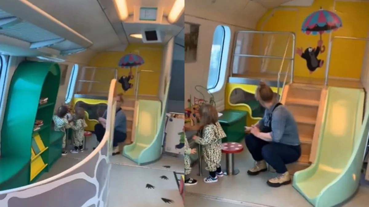 वीडियो एक ट्रेन कोच की है। जिसमें किसी लग्जरी होटल की तरह चाक-चौबंद है। सीट के बगल में बड़ी-बड़ी कांच की खिड़कियां, जिससे बाहर के खूबसूरत नजारे देखे जा सकते हैं। साथ ही ट्रेन के कोच में इतनी शानदार सफाई ऐसा लग रहा मानो जैसे किसी फाइव स्टार होटल में आ गए हो। ट्रेन के कोच में जो सबसे खास बात है वह ये है कि इसमें बच्चों के खेलने के लिए एक खास सेक्शन भी है, जहां छोटे बच्चे खेल सकते हैं। उनका ध्यान रखने के लिए ट्रेन के कोच में एक अटेंडेंट भी है। किड्स जोन में बच्चों के लिए एक सेल्फ पर कहानी की कई किताबें भी रखी गई हैं। ताकि जब उन्हें कहानी सुननी हो तब उन्हें कहानी सुनाकर उनका मनोरंजन किया जा सके।