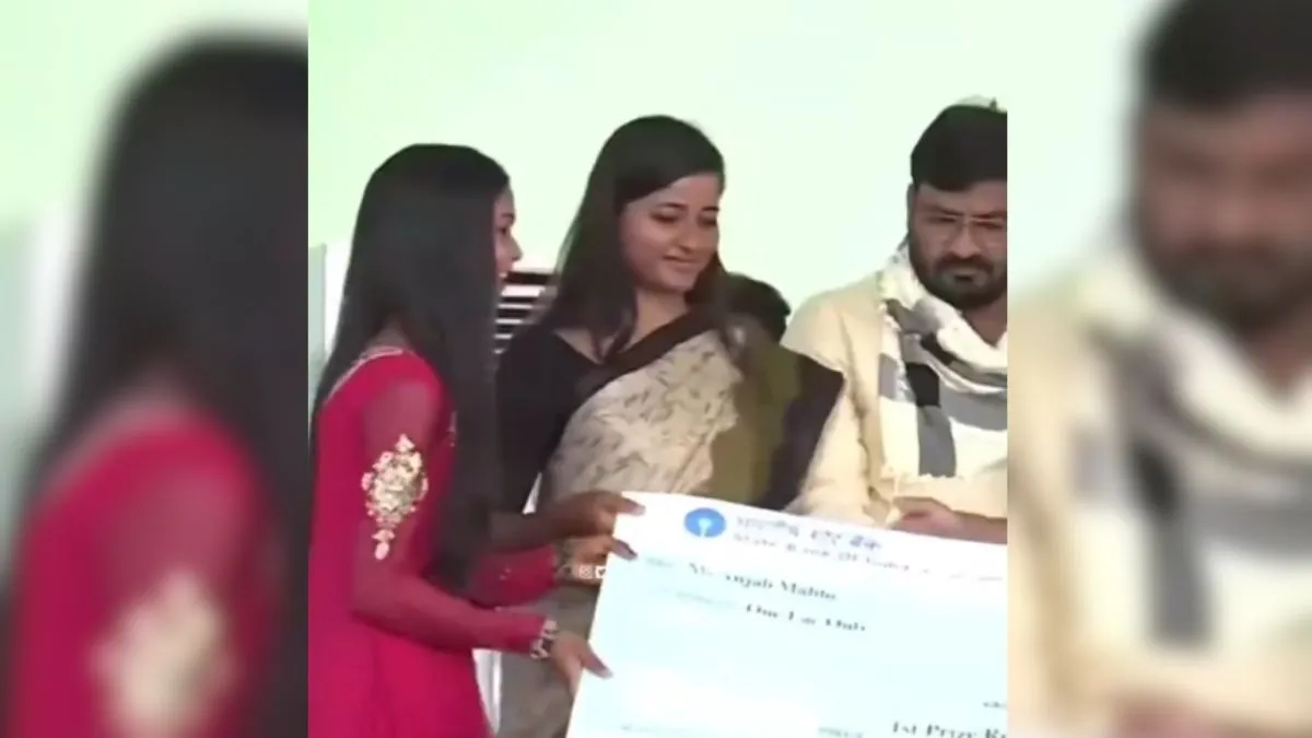 सोशल मीडिया पर वायरल हो रहे वीडियो में आप देख सकते हैं कि एक मंच पर कुछ लोग खड़े हैं। वहीं एक अनाउंसमेंट के जरिए अंजली महतो को रील्स बनाने के लिए 1 लाख रुपये का फर्स्ट प्राइज देने की घोषणा की जाती है। इसके बाद रील्स और शॉर्ट वीडियो बनाने के लिए संजीव राव को सेंकड प्राइज में 75 हजार रुपये दिए जाते हैं। इसका वीडियो सोशल मीडिया पर काफी वायरल हो रहा है। वीडियो में आप दोनों छात्रों को चेक कलेक्ट करते हुए भी देख सकते हैं।