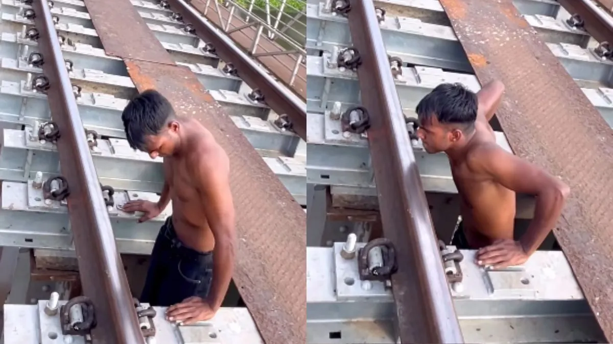 आज के समय में फिटनेस को लेकर लोग काफी जागरूक हो गए हैं और खुद को फिट करने में लगे हुए हैं मगर इसके कुछ जगह बनी हुई हैं। थोड़ी-बहुत एक्सरसाइज करने वाले लोग पार्क में जाते हैं या फिर घर पर ही कर लेते हैं। वहीं कई सारे लोग जिम में जाकर लोहा उठाते हैं और बॉडी बनाते हैं। मगर क्या आपने कभी किसी को रेलवे की पटरी पर जाकर एक्सरसाइज करते हुए देखा है? जाहिर सी बात है कि ऐसा नहीं देखा होगा क्योंकि बॉडी बनाने वाले जिम ही जाते हैं मगर जिनके सिर पर रील का बुखार चढ़ा हो, वो पटरियों पर भी जाते हैं। ऐसा ही कुछ वायरल हो रहे वीडियो में देखने को मिला। वीडियो में दिख रहा है कि एक लड़का पटरियों के बीच में लटकर वो एक्सरसाइज कर रहा है।