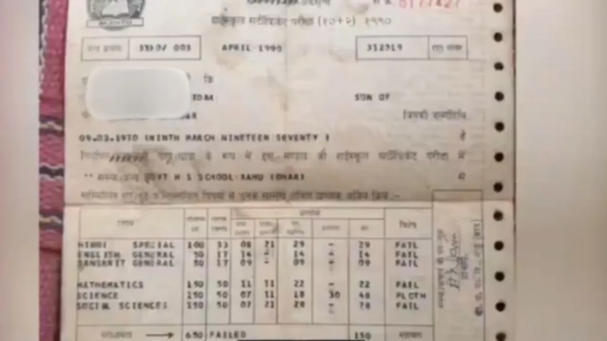 सोशल मीडिया पर वायरल हो रहे वीडियो में एक मार्कशीट नजर आती है। इस मार्कशीट को दिखाते हुए शख्स कहता है, 'दोस्तों हमारे पिताजी हमपर बहुत चिल्लाते थे कि पास हो जाओ। और ये देखिए 10वीं में जितने भी विषय हैं, सब में फेल हो गए थे। ये इनकी मार्कशीट है देखिए।' मार्कशीट पर जब नजर डालेंगे तो दिखेगा कि सभी में फेल लिखा हुआ है। वीडियो सोशल मीडिया पर काफी वायरल हो रहा है।