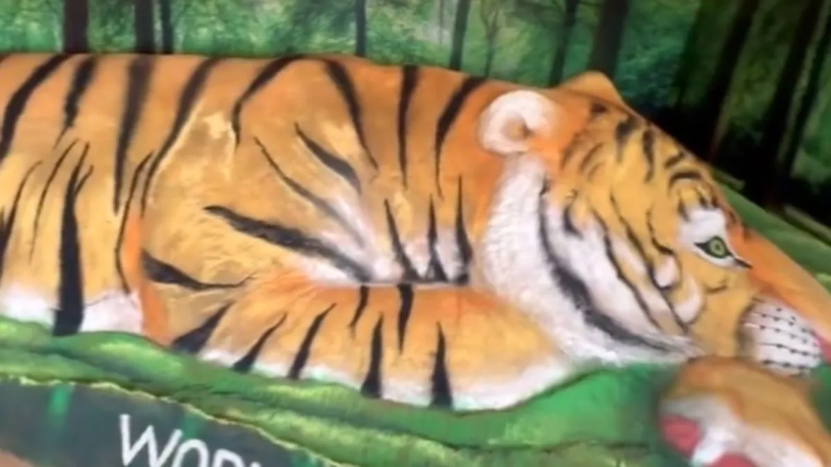 VIDEO: वन्यजीव संरक्षण के लिए सुदर्शन पटनायक ने बनाई 50 फुट लंबे बाघ की कलाकृति