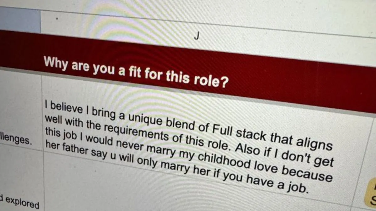 आपको पता ही होगा कि कई ऑफिस में इंटरव्यू के बाद एक सवाल पूछा जाता है कि 'हम आपको क्यों हायर करें?' यह सवाल इंटरव्यू देने वाले शख्स से पूछा जाता है। लोग इसका अपने मुताबिक जवाब देते हैं। एक शख्स ने ऐसा जवाब दिया जो अब वायरल हो रहा है। शख्स से पूछा गया था कि आप इस रोल के लिए फिट कैसे हैं? इसका जवाब देते हुए शख्स ने लिखा, 'मुझे लगता है कि मेरे पास वह क्षमता है जिसकी जरूरत इस रोल को है। और इसलिए भी क्योंकि अगर मुझे यह नौकरी नहीं मिली तो मैं कभी भी अपने बचपन के प्यार से शादी नहीं कर पाऊंगा क्योंकि उसके पापा ने कहा कि मैं सिर्फ तभी उससे शादी कर सकता हूं जब मेरे पास नौकरी होगी।'
