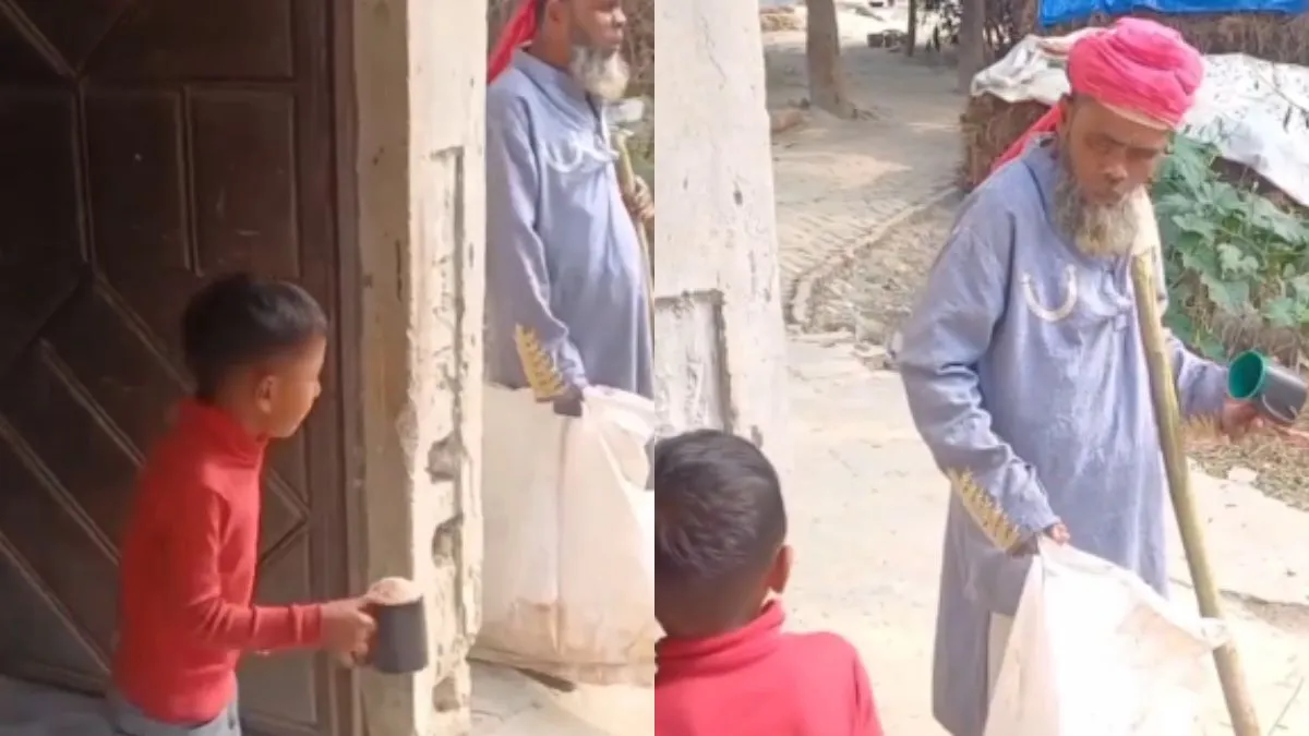 आप जानते ही होंगे कि कई बार अनाज मांगने के लिए लोग घर के दरवाजे पर आते हैं। ऐसे ही एक शख्स किसी के घर गया। वहां एक बच्चा था जो उनके लिए एक डिब्बे में चावल भर कर लाया। चचा भी तेजी से डिब्बा लेते हैं और फिर अपने बोरे में चावल डालने लगते हैं। मगर सेकंड से पहले ही चावल खत्म हो जाता है। इसका बाद चचा जब डिब्बे को अच्छे से देखते हैं तो वो भी हैरान हो जाते हैं और फिर बच्चे को घूरने लगते हैं। दरअसल बच्चे ने उल्टे डिब्बे में जरा चावल डाला था और वही देने के लिए आया था। इसका वीडियो सोशल मीडिया पर खूब वायरल हो रहा है। आप भी उस वायरल वीडियो को देखिए।