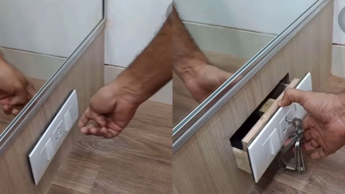 इंस्टाग्राम पर वायरल हो रहे वीडियो में एक स्विच बोर्ड नजर आ रहा है जिसे दीवार पर सबसे नीचे की तरफ लगवाया गया है। एक शख्स बोर्ड के स्विच को दबाकर बताता है कि इससे कुछ नहीं होगा। इसके बाद वह एक चाभी को प्लग लगाने वाले होल में डालकर उसी तरह घूमाता है जैसे किसी ताले को खोलने के लिए किया जाता है। इसके तुरंत बाद वह खूल जाता है और तब पता चलता है कि यह कोई इलेक्ट्रिक बोर्ड नहीं बल्कि एक हिडन लॉकर है। इस लॉकर में आप अपने कीमती सामान को रख सकते हैं और चोरों से बचा सकते हैं। क्योंकि चोर को इसका बिल्कुल अंदाजा नहीं होगा कि यह बोर्ड नही एक लॉकर है।