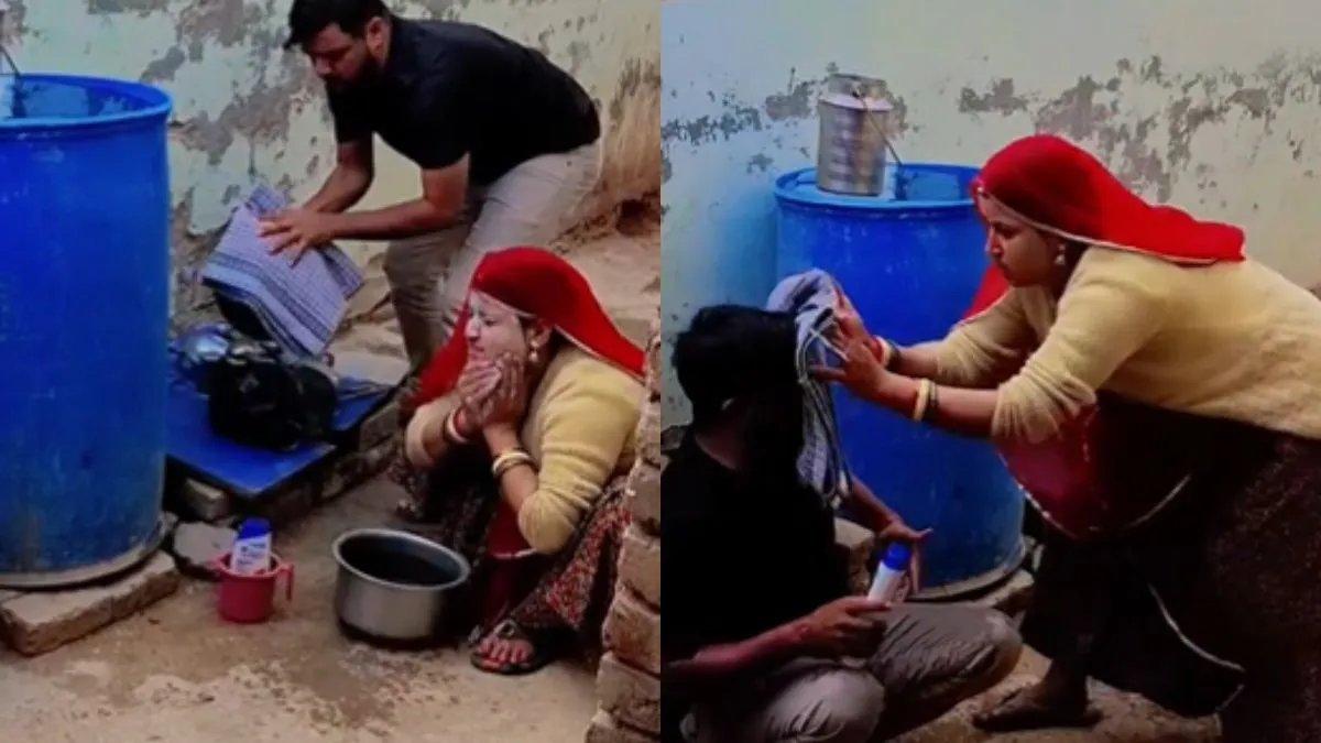 अभी जो वीडियो वायरल हो रहा है उसमें नजर आ रहा है कि एक महिला बैठकर अपने चेहरे को धो रही है। तभी उसके पीछे उसका पति आता है और वहां रखे तौलिए को बर्तन से काला कर देता है। वह ऐसा इसलिए करता है ताकि मुंह पोंछने पर उसकी पत्नी का चेहरा काला हो जाए। इसके बाद वो सामने बैठ जाता है। मगर उसका खेल उसी पर भारी पड़ जाता है। जिस पानी से महिला ने मुंह धोया था, उसे सामने फेंकती है और उसी शख्स के चेहरे पर जा पहुंचता है। इसके बाद महिला यह देखती है तो उसी तौलिए से उसकी चेहरा पोंछती है जिससे शख्स का ही चेहरा काला हो जाता है। मजाकिया अंदाज में बनाया हुआ यह वीडियो लोग खूब देख रहे हैं।