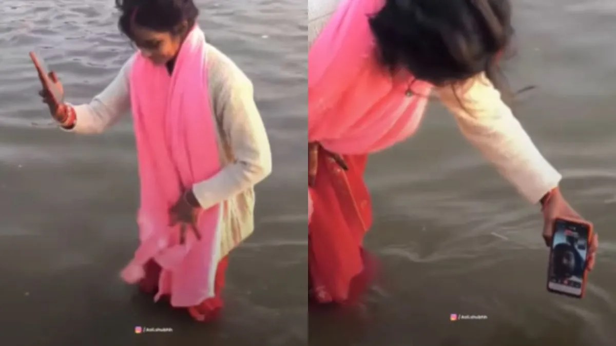 अभी जो वीडियो वायरल हो रहा है उसमें नजर आता है कि एक महिला नदी में उतरी हुई है। उसके हाथ में एक मोबाइल भी नजर आ रहा है। महिला फोन को कैमरे की तरफ घुमाती है तो नजर आता है कि फोन में वीडियो कॉल चल रहा है और कोई आदमी कॉल पर है। इसके बाद महिला उस फोन को पानी में डालती है और बाहर निकालती है। मतलब महिला फोन पर वीडियो कॉल करके उस आदमी को डुबकी लगवा रही है। पता नहीं कैसे मगर महिला को ऐसा विचार आया और किसी ने उसे मना भी नहीं किया। अब वो वीडियो सोशल मीडिया पर खूब वायरल हो रहा है।