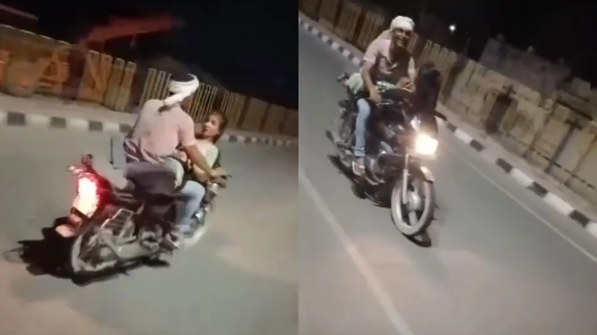 वायरल हो रहे इस वीडियो में दिख रहा है कि एक युवक बिना हेलमेट के बाइक चला रहा है, जबकि युवती बाइक की टंकी पर लेटी हुई है। दोनों आपस में हंसते-बातचीत करते हुए नजर आ रहे हैं। यह नजारा नेशनल हाईवे पर देखा गया, जहां भारी वाहनों का आवागमन आम है। इसी दौरान इस युवक के बगल से गुजर रहे एक अन्य बाइक सवार ने उनका वीडियो अपने कैमरे में रिकॉर्ड कर लिया। वीडियो में राहगीरों को यह कहते हुए सुना जा सकता है कि, "गलत है ये, सड़क पर इस तरह... कहो तो एक बोतल और कमरा दे दें।" इस पर युवक उन बाइक सवारों को वहां से निकलने का इशारा करता है। वहीं, लड़की भी बाइक पर लेटे-लेटे उन्हें वहां से जाने को बोलती है, जिसके बाद लड़के वहां से चुपचाप निकल जाते हैं।