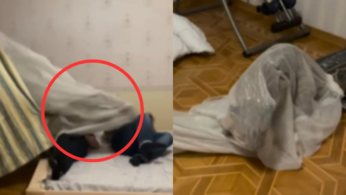 वीडियो में देखा जा सकता है कि दो युवक एक कमरे में अपने बेड पर आराम से लेटे हुए हैं। कमरे की खिड़की खुली हुई है। तभी अचानक से एक पैंथर तेज रफ्तार में दौड़ते हुए उस खिड़की से अंदर कमरे में घुस आता है। गनीमत रही कि कमरे के अंदर खिड़की पर पर्दे लगे हुए थे। जिससे पैंथर उसमें लिपट गया और बेड के किनारे दूर जा गिरा। इधर, बेड पर सो रहे लड़के घबराते हुए जग गए और डर के मारे चुपचाप बेड पर पड़े रहे।