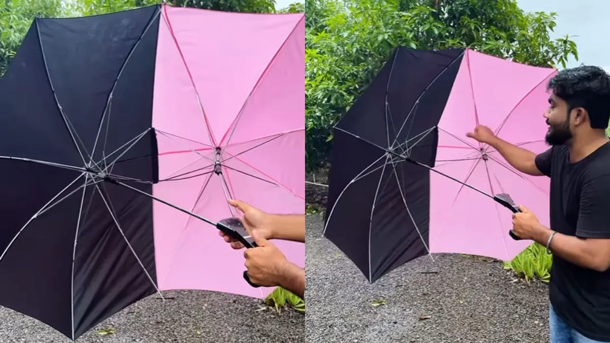 फिलहाल यह छाता सोशल मीडिया पर खूब वायरल हो रहा है। एक शख्स वीडियो के जरिए इस छाते की खूबियां और इस्तेमाल करने का तरीका बता रहा है। वीडियो में शख्स छाते का इस्तेमाल करता भी नजर आ रहा है। वह लोगों को बता रहा है कि यह छाता स्पेशली कपल्स के लिए बनाया गया है। इसे लव बर्ड्स और शादीशुदा लोग इस्तेमाल कर सकते हैं। वीडियो में शख्स छाते को खोलकर दिखाता है। छाते के खुलते ही एक ही छाते से जुड़ी दो छतरियां खुल जाती हैं। इस कपल छाते में एक छतरी काले रंग की है तो दूसरी गुलाबी रंग की।
