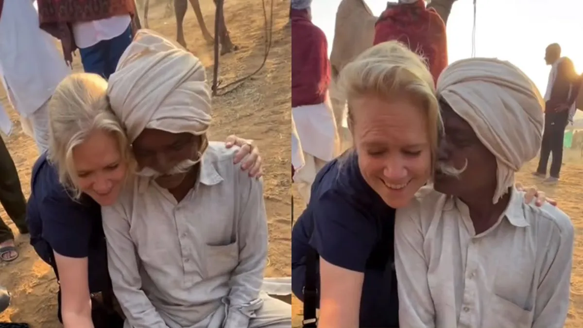 विदेशी महिला देख खुद को कंट्रोल नहीं कर पाए ताऊ, फोटो खिंचवाते वक्त कर डाली ऐसी हरकत, Video हुआ वायरल