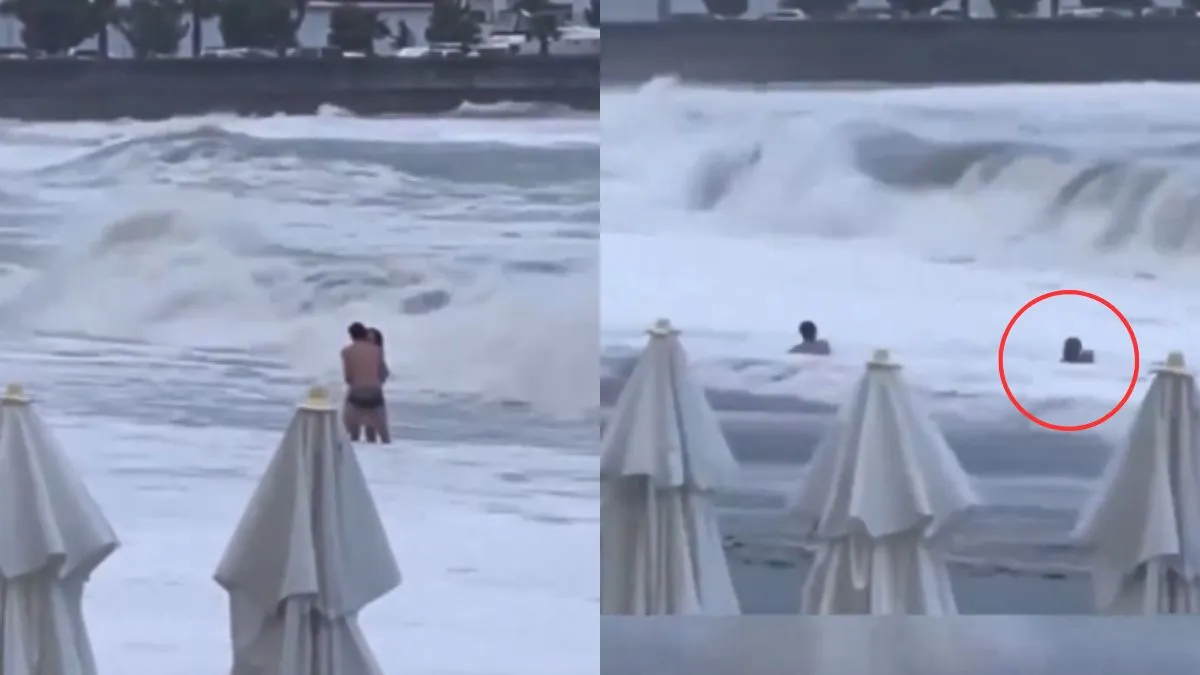 Video: समुद्र के किनारे मौज-मस्ती करना कपल को पड़ा भारी, अचानक आई लहर में बह गई लड़की