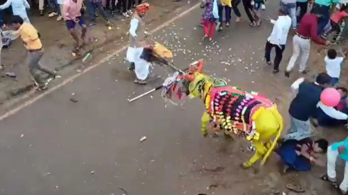 महाराष्ट्र में पोला उत्सव बड़े धूमधाम से मनाया जाता है। इस उत्सव के दौरान किसान अपने बैलों को अच्छे से सजाते हैं और उसकी पूजा की जाती है। महाराष्ट्र में यह परंपरा कई वर्षों से चली आ रही है। इस साल भी नागपुर के रामटेक में पोला पर्व मनाया जा रहा था। पूजा के दैरान किसान अपने बैलों को सजाकर रामटेक के नगरधन चौक पर इकट्ठा हुए थे। अचानक ढोल-नगाड़ों की आवाज से बैल भड़क गया और वह इधर-उधर भागने लगा। बैल ने 2-3 लोगों को घायल भी कर दिया।