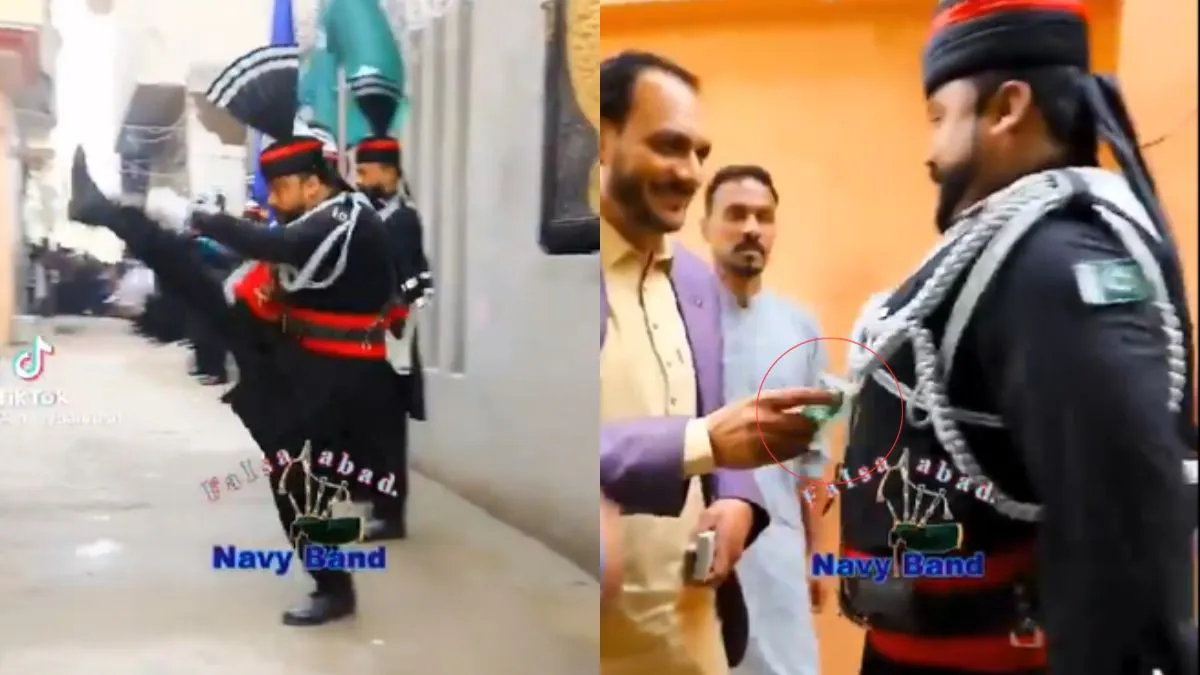 सोशल मीडिया प्लेटफॉर्म एक्स (पहले ट्विटर) पर एक वीडियो वायरल हो रहा है। वीडियो में आपको मर्दों का एक ग्रुप दिखाई देगा जिसने पाकिस्तानी सेना जैसी वर्दी पहनी हुई है। ऐसा दावा किया जा रहा है कि ये लोग किसी शादी में फुट-स्टॉम्पिंग कर रहे हैं। आपको बैकग्राउंड में ढोल बजने की आवाज भी सुनाई दे रही होगी। वीडियो पर एक स्टीकर लगा हुआ है जिस पर 'पैसा आबाद- नैवी बैंड' लिखा हुआ है। हालांकि इस वीडियो की आधिकारिक पुष्टि नहीं हो पाई है।