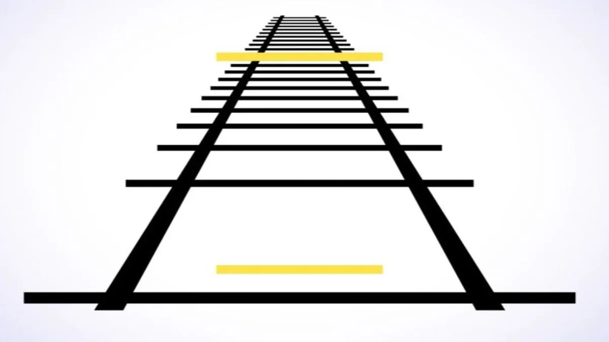 आशा करते हैं कि आपने जवाब पता कर लिया होगा। अगर आपको पहली वाली पीली रेखा ज्यादा बड़ी लग रही तो आप बिल्कुल गलत हैं और अगर आपको दूसरी वाली लाइन बड़ी लग रही तो भी आप गलत हैं। क्योंकि ये दोनों लाइन एक बराबर है। दोनों में कोई अंतर नहीं है। आपको दूर वाली लाइन बड़ी लग रही होगी क्योंकि वह देखने में बड़ी है लेकिन आपको बता दें कि इस तस्वीर को अगर आप ध्यान से देखेंगे तो आपको पता चलेगा कि ये तस्वीर एक प्रस्पेक्टिव व्यू से बनाई गई है। जैसे कि एक जगह से आप खड़े हो दो समानांतर रेखाओं को देखेंगे तो आप लगेगा कि ये दोनों रेखाएं आगे चलकर एक बिंदु पर मिल रही हैं। पर ऐसा होता नहीं है क्योंकि समानांतर रेखाएं कभी भी एक दूसरे से नहीं मिलती।