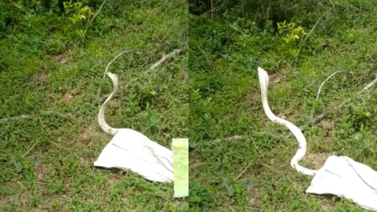 सफेद रंग का कोबरा सांप दिखा कॉलोनी में, देखें ये हैरान कर देने वाला Video