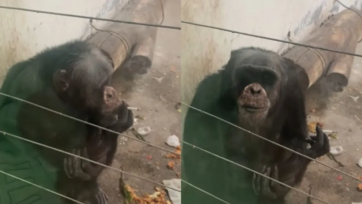 अभी एक ऐसा वीडियो वायरल हो रहा है जिसे देखने के बाद आप पूरी तरह से हैरान होने वाले हैं। वीडियो में नजर आ रहा है कि एक चिंपैंजी जू के अंदर बैठा हुआ है। उसके पास एक जलता हुआ सिगरेट है जिसे वो पी रहा है और मुंह से धुआँ भी छोड़ रहा है। आपने चिंपैंजी को शायद ही ऐसी हरकत करते हुए कभी देखा होगा। ऐसा भी हो सकता है कि किसी इंसान ने उसे सिगरेट जलाकर दे दी और फिर चिंपैंजी उसे पी रहा है। वीडियो कब और कहां का है, इसकी जानकारी नहीं मिल पाई मगर वीडियो काफी वायरल हो रहा है।