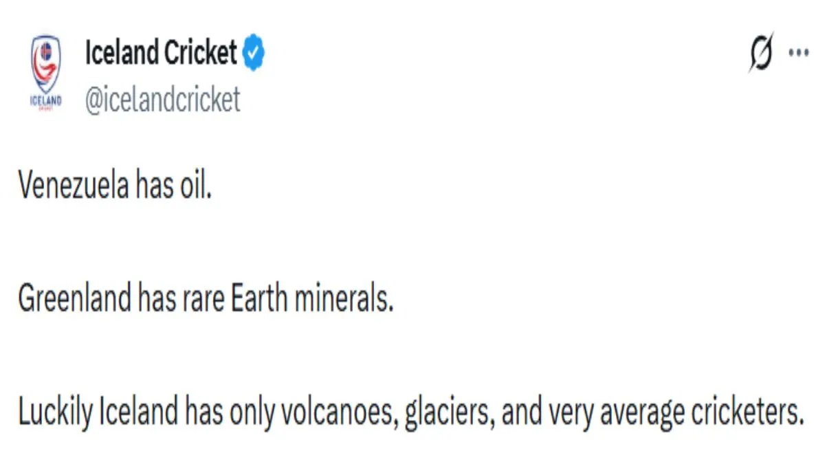 हम जिस पोस्ट की बात कर रहे हैं उसमें क्रिकेट बोर्ड ने मजे लेते हुए यह बताने की कोशिश की है कि ट्रंप वेनेजुएला जैसा हमला आइसलैंड पर क्यों नहीं कर सकते हैं। उसमें लिखा है, 'वेनेजुएला के पास तेल है, ग्रीनलैंड के पास दुर्लभ पृथ्वी खनिज है। वहीं किस्मत से आइसलैंड के पास सिर्फ वैलकैनो, ग्लेशियर और बहुत औसत क्रिकेटर्स हैं।' इस तरह क्रिकेट बोर्ड ने अपने ही खिलाड़ियों के मजे लिए हैं जो अब सोशल मीडिया पर काफी वायरल हो रहा है।