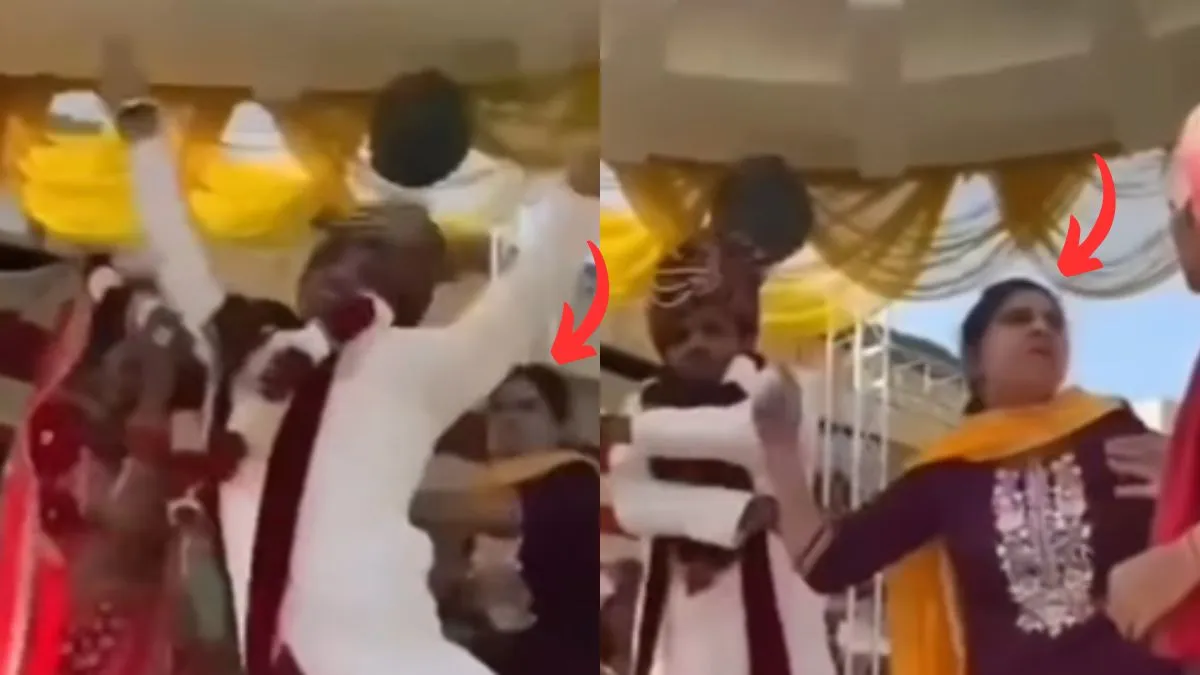 वीडियो में देखा जा सकता है कि एक शादी समारोह में दूल्हा अपनी दुल्हन को माला पहना ही रहा होता है कि पीछे से उसकी प्रेमिका आकर उसे लात मारकर गिरा देती है। स्टेज पर दूल्हे की प्रेमिका को देख शादी में आए मेहमान हैरान रह जाते हैं। उधर, नीचे गिरे दूल्हे को बचाने के लिए एक महिला दौड़कर उसके पास पहुंचती है। तभी दूल्हे की प्रेमिका उसे मारने के लिए फिर से उठाती है और फिर से कुछ कर पाती कि उससे पहले उस महिला का उसकी प्रेमिका से बहस हो जाती है। इधर, दुल्हन भी दूल्हे की प्रेमिका से बहस करते दिख रही है। लोग मुद्दे को सुलझाने की कोशिश में लगे हुए हैं। शादी में मचे इस बवाल के वीडियो को देख यूजर्स कमेंट कर अपनी-अपनी प्रतिक्रिया भी दे रहे हैं। जहां कई लोगों ने दूल्हे के प्रेमिका की इस हरकत को बिल्कुल जायज ठहराया तो कई लोग इस स्थिति पर भी मजे लेने से पीछे नहीं हटे।