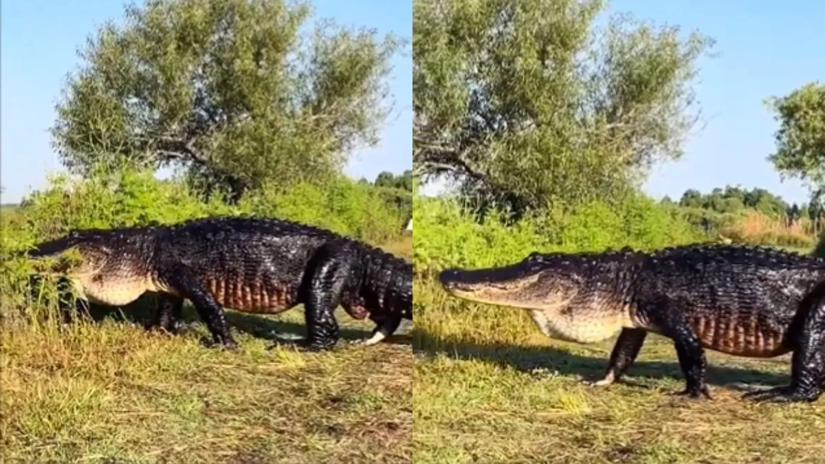 झाड़ियों से निकला विशालकाय मगरमच्छ