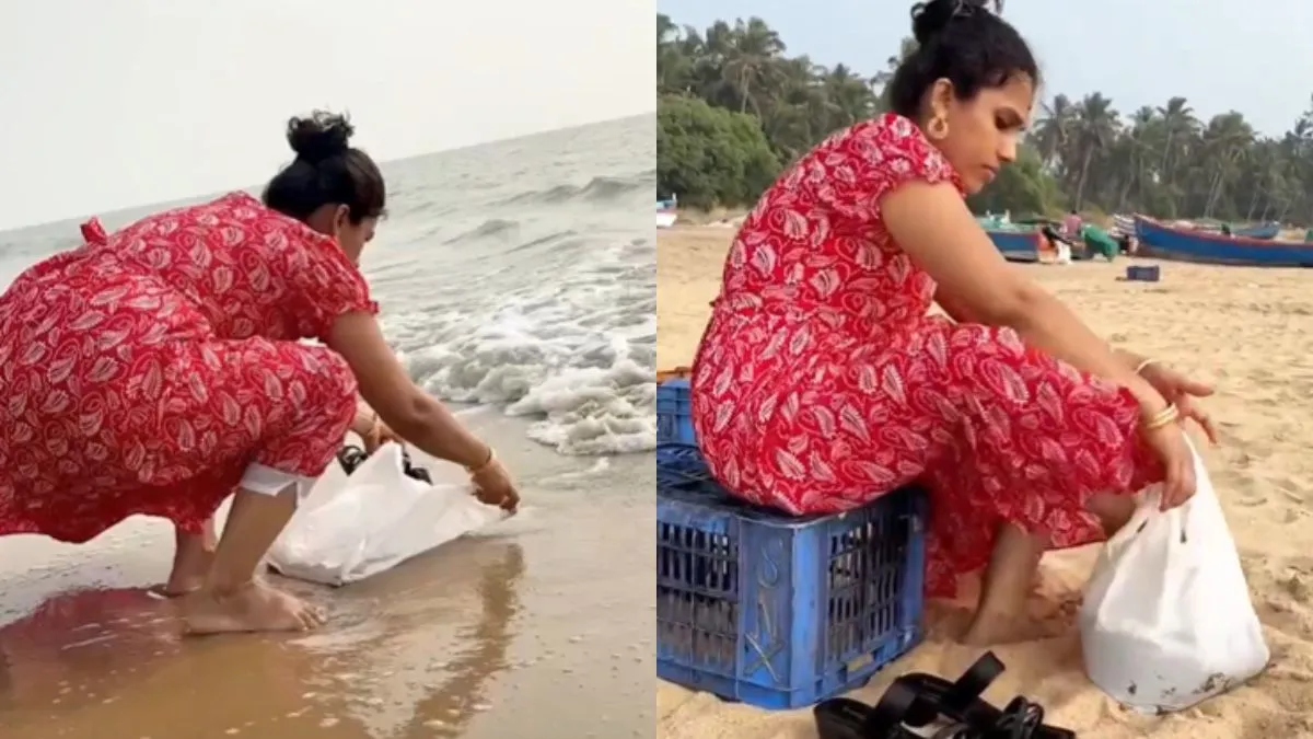 अभी जो वीडियो वायरल हो रहा है उसमें नजर आता है कि बीच पर खड़ी महिला एक पॉलीथिन लेकर बैठी है और समुद्र की लहरे आते ही उसमें पानी भर जाता है। अब तक समझ में नहीं आता है कि महिला ऐसा क्यों कर रही है। इसके बाद वो उस पॉलीथिन को लेकर कुछ पीछे आती है और एक जगह पर बैठती है। वहां बैठने के बाद एक पहले अपने एक पैर को पानी में डालती है। इससे उसके पैर साफ हो जाते हैं और इसके बाद वो चप्पल पहन लेती है। दूसरे पैर के साथ भी वो ऐसा ही करती है। इसके बाद समझ में आता है कि महिला चप्पल को गीला किए बिना अपने पैरों को साफ करने के लिए यह तरीका अपनाती है।
