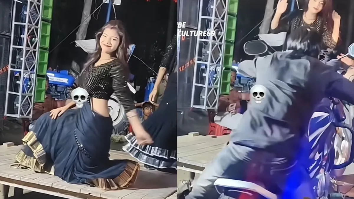 लड़कियों के डांस के बीच शख्स ने मारी बाइक से एन्ट्री
