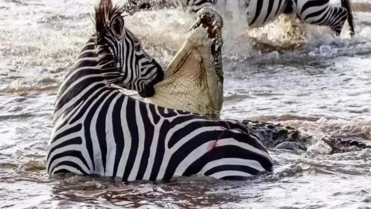 मगरमच्छों से बचकर ऐसे निकला जेब्रा