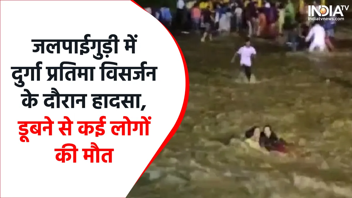 West Bengal: पश्चिम बंगाल के जलपाईगुड़ी में दुर्गा प्रतिमा विसर्जन के दौरान बड़ा हादसा हो गया है। डीएम मौमिता गोदारा के अनुसार विसर्जन के दौरान स्थानीय माल नदी में अचानक आई बाढ़ से 8 लोग डूब गए। कई लोग लापता बताए जा रहे हैं। यह घटना बुधवार देर हुई जब विसर्जन समारोह में शामिल होने के लिए सैकड़ों की संख्या में लोग माल नदी के किनारे जमा हो गए थे।