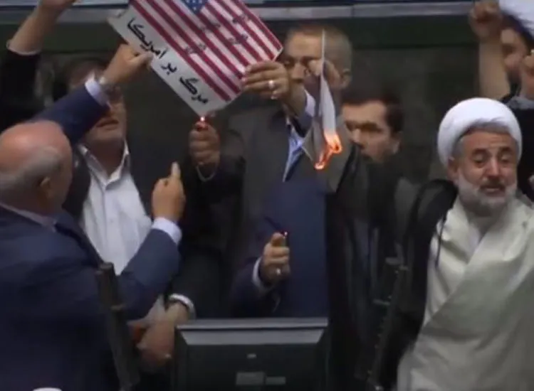 बीते बुधवार अमेरिका के राष्ट्रपति डोनाल्ड ट्रंप द्वारा ईरान के साथ ऐतिहासिक परमाणु हथियार समझौता खत्म करने के बाद ईरान की संसद में खूब हंगामा किया गया। संसद में ट्रंप के फैसले के विरोध में अमेरिकी झंडे को जलाया गया।