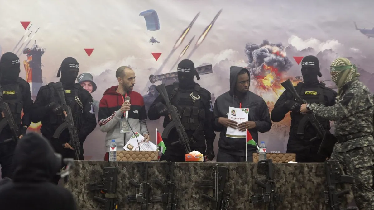 इससे पहले दिन में दक्षिणी गाजा शहर राफा में दो अन्य बंधकों को रिहा कर दिया गया था। दो बंधकों ताल शोहम (40) और एवेरा मेंगिस्टू (39) को नकाबपोश और हथियारबंद हमास लड़ाके मंच पर लाए और उसके बाद उन्हें रेड क्रॉस की एम्बुलेंस में बैठा दिया गया। इसके बाद एम्बुलेंस इजराइल में एक नजदीकी क्रॉसिंग की ओर बढ़ गई। छठे बंधक, हिशाम अल-सईद (36) को भी शनिवार को रिहा किया जाना है।