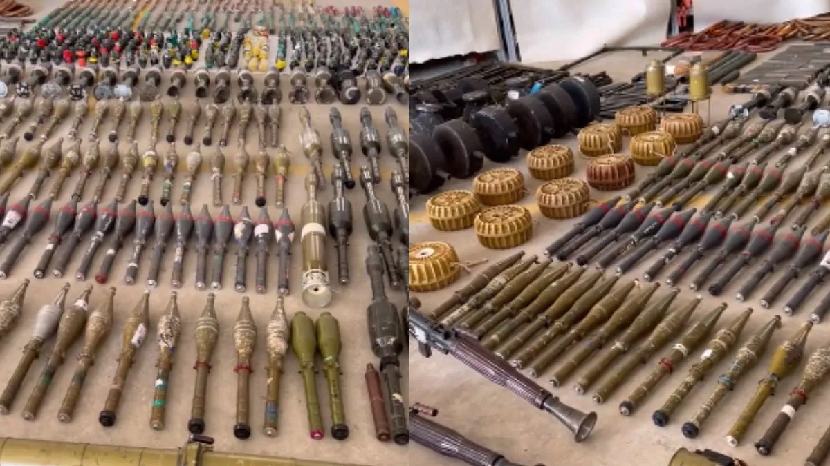 इजरायली सेना ने हमास आतंकियों के पास से विस्फोटक हथियारों का वो जखीरा बरामद किया है, जिससे 7 अक्टूबर को तबाही मचाई गई थी। इजरायली सेना हमास आतंकियों के पास इन हथियारों को देखकर दंग रह गई। एक वीडियो फुटेज के जरिये इजरायली डिफेंस फोर्सेज (आइडीएफ) ने हमास आतंकियों के पास से बरामद इन हथियारों को दिखाया है। इसमें 1,493 हथगोले और विस्फोटक, 760 आरपीजी, 427 विस्फोटक बेल्ट, 375 आग्नेयास्त्र, 106 रॉकेट और मिसाइलें शामिल हैं। यही वह हथियार हैं, जिनका इस्तेमाल आतंकियों ने 7 अक्टूबर को 1,400 से अधिक इज़रायली नागरिकों के नरसंहार के लिए किया था। उनमें से कुछ हथियार यहां बच गए थे, जिसे अब इजरायली सेना ने बरामद किया है।