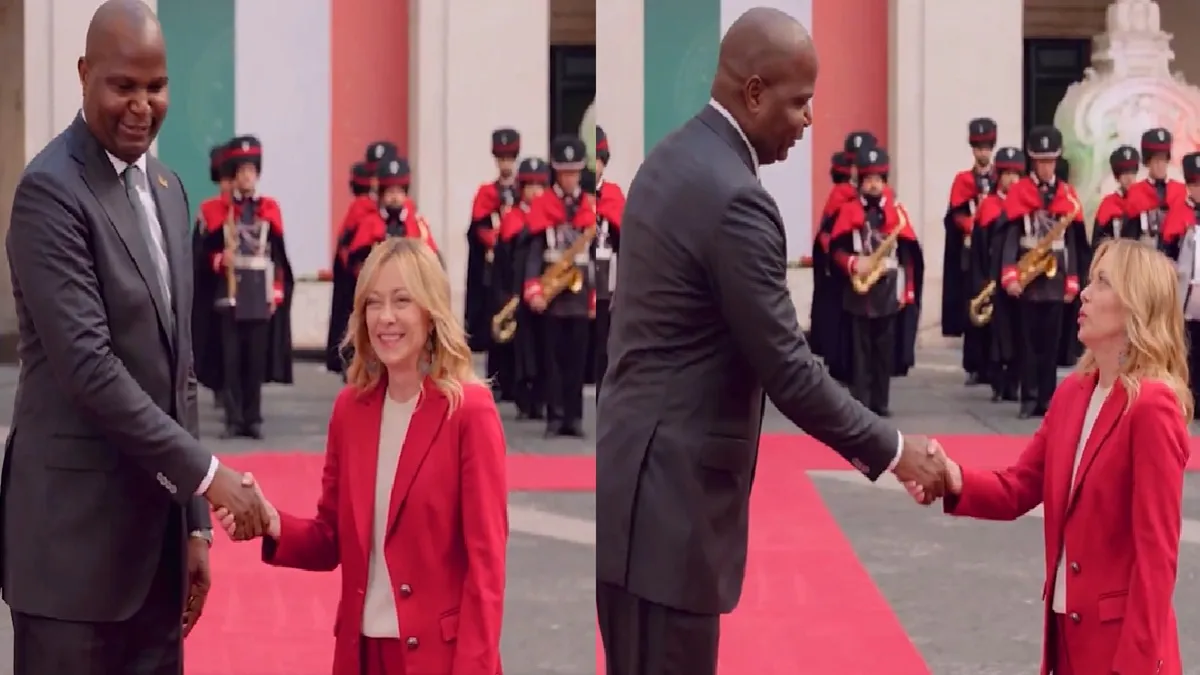 रोम में मेलोनी मोजाम्बिक के राष्ट्रपति से मिलने के लिए आगे बढ़ीं और उनके कद को देखकर कुछ देर के लिए हैरान रह गईं। वीडियो में मेलोनी मोजाम्बिक के राष्ट्रपति डैनियल चैपो को ऊपर देखती हुई दिख रही हैं, जिसके बाद वह हल्की मुस्कान देती हैं, और जब दोनों फ़ोटो खिंचवा रहे थे, तो उनके हाव-भाव से हैरानी साफ झलक रही थी। एक समय तो ऐसा भी लगा कि उन्होंने कुछ बुदबुदाया भी। मेलोनी का यही वीडियो सोशल मीडिया पर वायरल हो गया है।