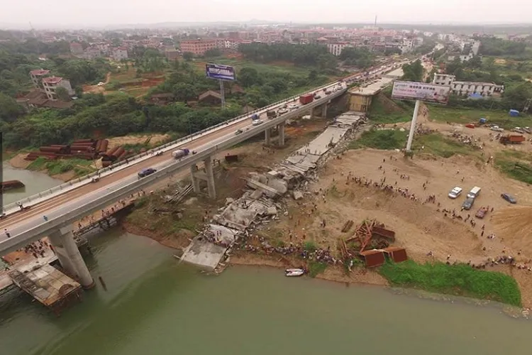 सरकारी प्रसारणकर्ता सीसीटीवी पर प्रसारित फुटेज में दिखाया गया कि छह मेहराब वाले पुल के दो मेहराब वाला खंड कुछ ही सेकंड में गिर गया। यह पुल ग्वांगदोंग प्रांत में दोंगजियांग नदी पर बना है। पुल ढहने के कारणों का पता लगाया जा रहा है। दक्षिणी चीन में भारी बारिश की वजह से आई बाढ से 61 लोगों की मौत हो गई है लेकिन यह अभी स्पष्ट नहीं है कि क्या पानी का बढ़ना पुल ढहने की वजह है।