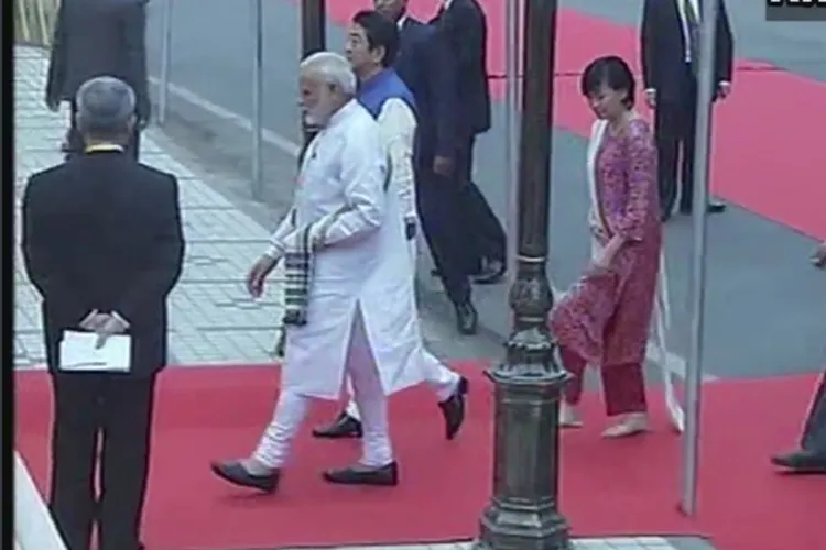 जापान के प्रधानमंत्री शिंजो आबे बीते बुधवार अपनी दो दिवसीय यात्रा पर भारत पहुंचे। जापान के प्रधानमंत्री शिंजो आबे और प्रधानमंत्री नरेंद्र मोदी करीब 9 किमी का रोड शो पूरा कर साबरमती आश्रम पहुंचे। साबरमती आश्रम में शिंजो आबे और उनकी पत्नी ने महात्मा गांधी को श्रद्धांजलि अर्पित की। पीएम मोदी और शिंजो आबे एक साथ साबमती रिवर फ्रंट पर बैठ और गुफ्तगू की। ये पहला मौका है जब पीएम मोदी किसी विदेशी मेहमान के साथ रोड शो किया। आज दोनों नेता अहमदाबाद-मुंबई बुलेट ट्रेन प्रोजेक्ट का शिलान्यास करेंगे। भारत और जापान के बीच चल रही इस परियोजना से चीन काफी चिढ़ गया है। जिसके चलते चीन ने भारत को एक ऑफर दिया है। (ग्लोबल ह्यूमन कैपिटल इंडेक्स में भारत को मिला 103वें स्थान)