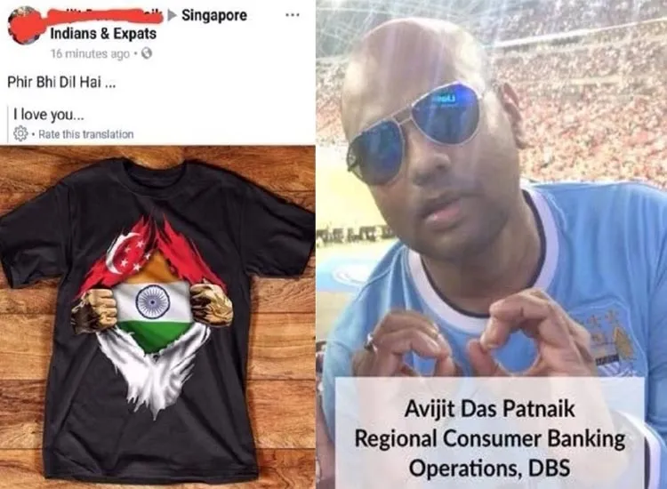 इसे ऑनलाइन तब बड़े पैमाने पर साझा किया जब अविजीत दास पटनायक ने सिंगापुर इंडियंस एंड एक्सपैट्स पेज पर तस्वीर पोस्ट की। इस पेज से 11,000 लोग जुड़े हुए हैं। खबर में बताया कि एक दशक से सिंगापुर में रह रहे पटनायक ने तस्वीर के साथ हिंदी में एक कैप्शन लिखा जो लोकप्रिय बॉलवुड गीत 'फिर भी दिल है' था। कई नागरिकों ने इसे अपमानजनक बताया क्योंकि इसमें हाथों से सिंगापुर के ध्वज को फाड़ते हुए दिखाया गया है।