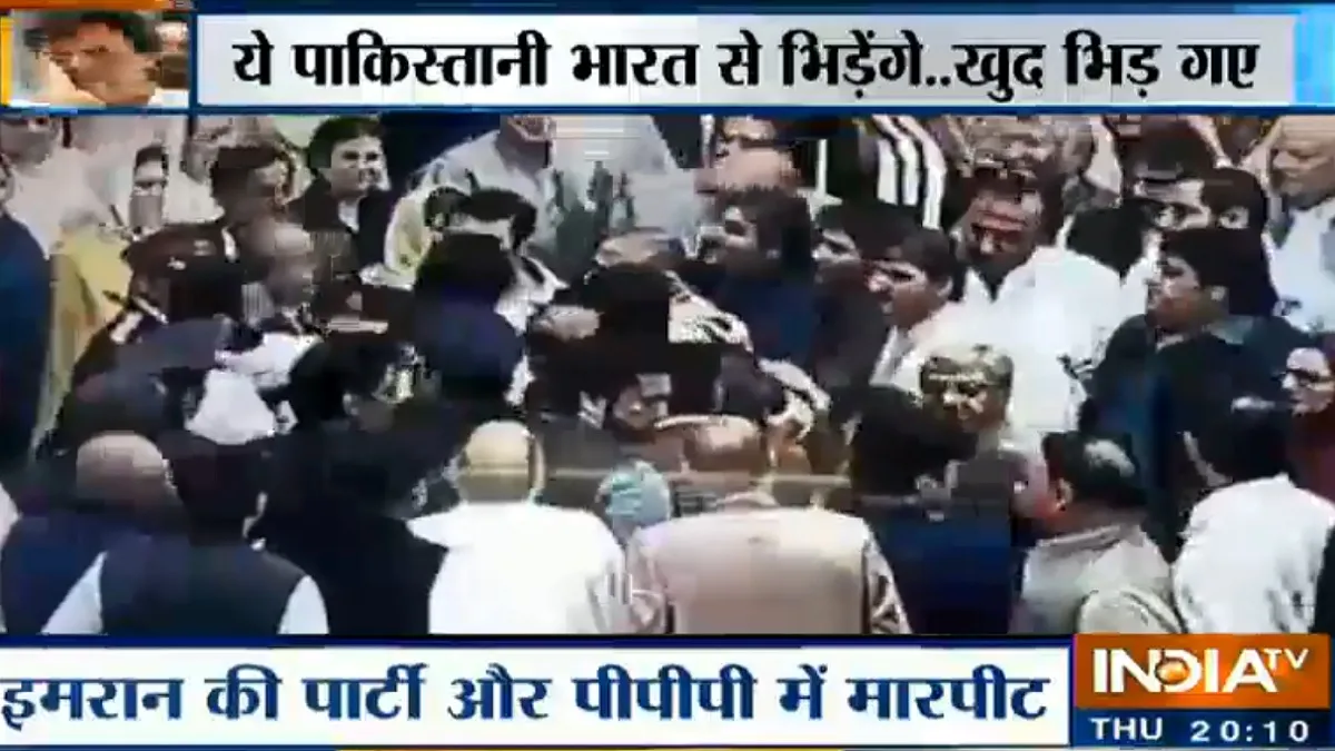 इस्लामाबाद: पाकिस्तान की संसद में ज्वाइंट सेशन के दौरान सांसदों के बीच जमकर हाथापाई हुई। सत्ता पक्ष और विपक्ष के सांसदों ने एक-दूसरे के साथ मारपीट की। शाम करीब 5 बजे संसद में बहस के दौरान इमरान खान की पार्टी पीटीआई और पीपीपी के सदस्य आपस में भिड़ गये, जिसके बाद दोनों दल के सांसदों ने एक-दूसरे को घूंसे मारे। जिस वक्त पाकिस्तान की संसद में हाथापाई हो रही थी उस वक्त वहां पाकिस्तान के राष्ट्रपति भी मौजूद थे।