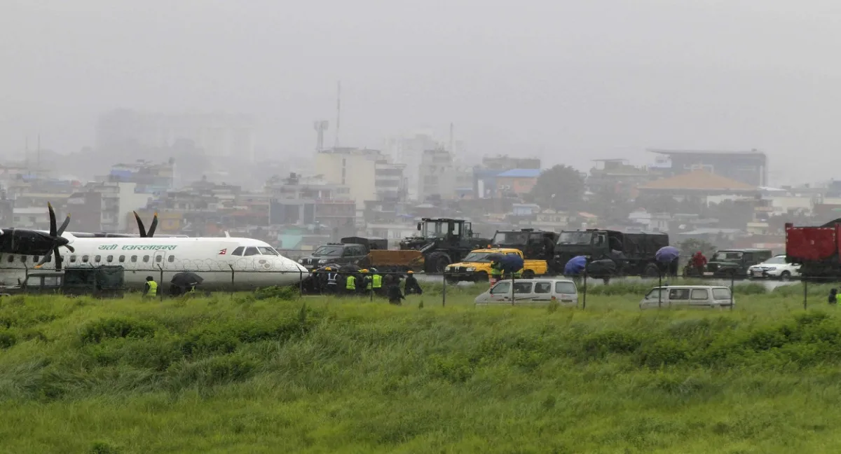 ‘येती एयरलाइन्स’ के एटीआर72-500 दक्षिणी नेपाल से काठमांडू आ रहा था, जब वह 15 मीटर तक फिसलकर घास के मैदान में चला गया। इसमें 66 लोग सवार थे।