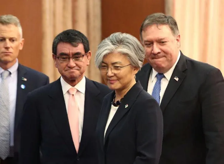 सियोल: दक्षिण कोरिया, अमेरिका और जापान के शीर्ष राजनयिकों ने गुरुवार को उत्तर कोरिया की रणनीति पर वार्ता की। 'योनहाप न्यूज एजेंसी' के अनुसार, अमेरिकी विदेश मंत्री माइक पोम्पियो के साथ द्विपक्षीय बैठक शुरू करने के साथ दक्षिण कोरियाई विदेश मंत्री कांग क्युंग-व्हा ने उम्मीद जताई कि वार्ता की मौजूदा गति समान रहेगी। इस बैठक के बाद जापान के मंत्री तारो कोनो के साथ पोम्पियो और कांग की त्रिपक्षीय वार्ता भी हुई। इससे पहले गुरुवार को पोम्पियो ने दक्षिण कोरिया के राष्ट्रपति मून जे इन से फोन पर वार्ता की। अमेरिकी राजनयिक ने मंगलवार को सिंगापुर में राष्ट्रपति डोनाल्ड ट्रंप और उत्तर कोरिया के सर्वोच्च नेता किम जोंग उन के बीच शिखर सम्मेलन की बैठक के परिणामों पर उन्हें विस्तार से जानकारी दी। (असद ने कहा- दक्षिण सीरिया के साथ होने वाले समझौते में बाधा डाल रहे हैं इस्राइल, अमेरिका )