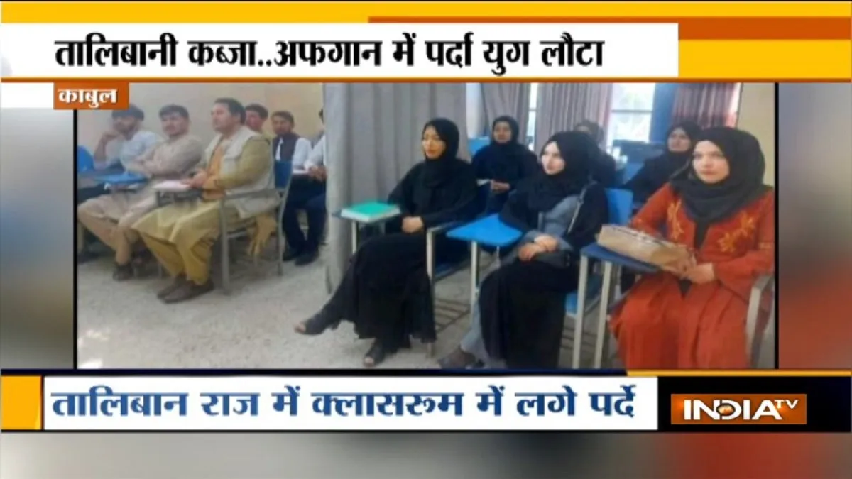 काबुल. तालिबान के राज में अफगानिस्तान में पढ़ाई कैसे होगी इसकी तस्वीर सामने आ गई है। आज काबुल में इब्न सिना यूनिवर्सिटी का पहला दिन था। क्लास शुरू हुई तो अंदर पर्दा लगा दिखाई दिया, ये पर्दा छात्र और छात्राओं के बीच लगाया गया था। यहां लड़के-लड़कियों को अलग-अलग बिठाया गया था। क्लास रूम के अंदर सभी लड़कियां हिजाब में नजर आईं।