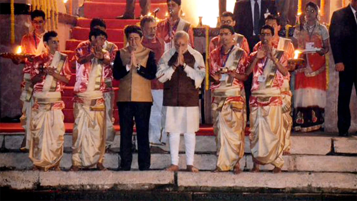 Shinzo Abe in Varanasi: संयुक्त अरब अमीरात में रहने वाले एक भारतीय कारोबारी ने शुक्रवार को याद किया कि कैसे जापान के पूर्व प्रधानमंत्री शिंजो आबे ने 2015 में वाराणसी की अपनी यात्रा के दौरान उनके दिए उपहार गोल्डन बेज जैकेट की तारीफ की थी और उसे स्वीकार किया था। 67 वर्षीय आबे की शुक्रवार को पश्चिमी जापान में एक बंदूकधारी ने हत्या कर दी। हमलावर ने आबे पर तब गोलियां चलायी जब वह चुनावी सभा को संबोधित कर रहे थे। पुलिस ने घटनास्थल पर एक संदिग्ध तेत्सुया यामागामी को गिरफ्तार किया।