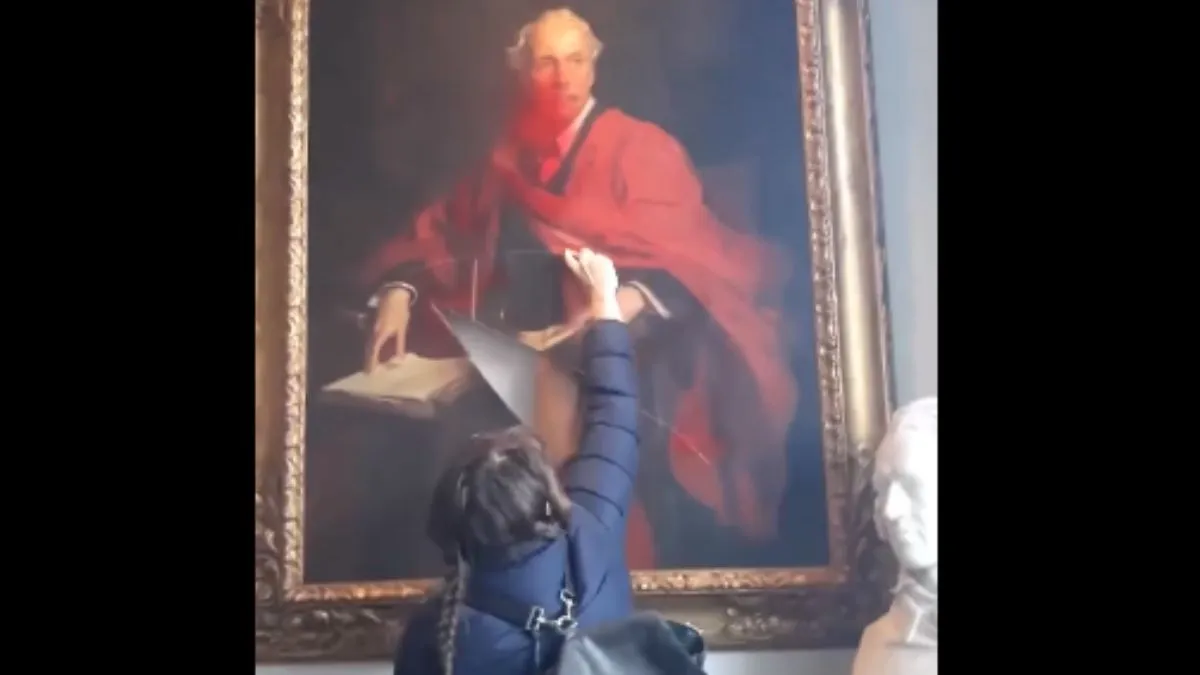पेंटिंग से बननाई गई लॉर्ड ऑर्थर की तस्वीर को लाल रंग से स्प्रे-पेंट करने के बाद उसके टुकड़े कर दिए। फिलिस्तीन एक्शन ने बाद में इस वीडियो को अपने सोशल मीडिया हैंडल पर शेयर करते गर्व से घोषणा की कि उसके एक कार्यकर्ता ने यह काम किया है। एक्टिविस्ट समूह ने "1917 में बाल्फोर घोषणा जारी होने के बाद से फिलिस्तीनी लोगों के रक्तपात" के प्रतीक के रूप में फिलिप एलेक्सियस डी लास्ज़लो की लाल रंग वाली पेंटिंग को बर्बाद करने की मांग की। फ़िलिस्तीन एक्शन वेबसाइट ने फिर से बताया कि कैसे ब्रिटिश राजनेता ने 1917 के कुख्यात बाल्फ़ोर घोषणा का समर्थन किया, जिसमें अधिकांश स्वदेशी लोगों के यहूदी नहीं होने के बावजूद फ़िलिस्तीन में "यहूदी लोगों के लिए एक राष्ट्रीय घर" का वादा किया गया था।
