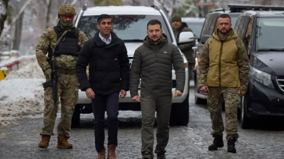 Britain PM Rishi Sunak Made Surprise visit to Ukraine:ब्रिटेन के प्रधानमंत्री बनने के बाद ऋषि सुनक ने शनिवार को यूक्रेन का औचक दौरा करके राष्ट्रपति जेलेंस्की को भी हैरत में डाल दिया। जानकारी मिलते ही जेलेंस्की ने ऋषि सुनक की आगवानी की। इन दिनों यूक्रेन में ठंड और बर्फबारी बढ़ गई है। ऋषि सुनक ब्लैक जैकेट में नजर आए। सुनक ने यूक्रेन की राजधानी कीव में जेलेंस्की के साथ कई क्षेत्रों का दौरा कर युद्ध की विभीषिका का आकलन किया। साथ ही यूक्रेन की मदद के लिए बड़े पैकेज का ऐलान किया।