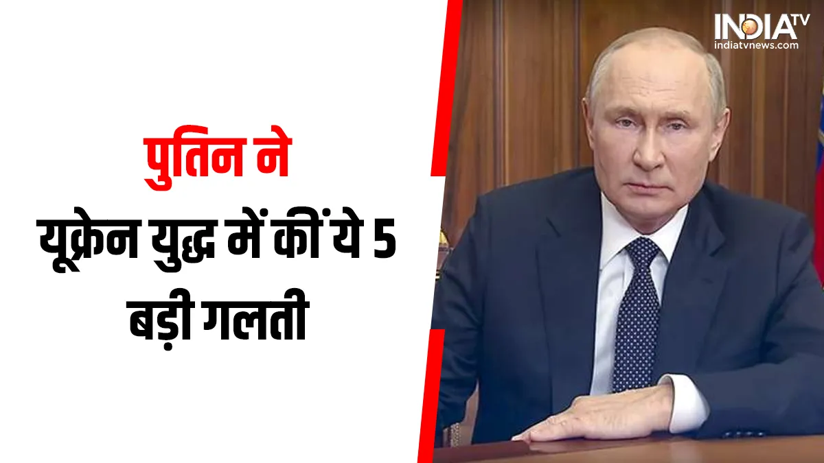 Putin's Mistakes in Ukraine War: रूस और यूक्रेन के बीच जारी जंग को कुछ ही दिनों में 8 महीने पूरे हो जाएंगे। एक के बाद एक असफलताओं और भारी नुकसान के बावजूद भी रूस के राष्ट्रपति व्लादिमीर पुतिन इस लड़ाई को जायज ठहरा रहे हैं। कुछ दिन पहले उन्होंने यूक्रेन के चार क्षेत्रों को रूस में मिलाने का ऐलान किया था। लेकिन इसे हम पुतिन की जीत कतई नहीं कह सकते। अगर मीडिया रिपोर्ट्स की मानें, तो यूक्रेन में पुतिन की सेना को हताशा का सामना करना पड़ रहा है। इस युद्ध में खुद रूस के लोग अपने राष्ट्रपति के साथ खड़े नहीं हो रहे, जिसकी पुष्टि इसी बात से हो जाती है कि लोग देश छोड़कर भाग रहे हैं। पुतिन अपनी कुछ गलतियों की वजह से यूक्रेन में विफलता का सामना कर रहे हैं। उन्होंने इस युद्ध में ऐसी 5 बड़ी गलतियां की हैं, जिनकी वजह से वह युद्ध को अभी न तो जीत पाए हैं और अब सैनिक कम पड़ने के बावजूद खत्म भी नहीं करवा पा रहे हैं।