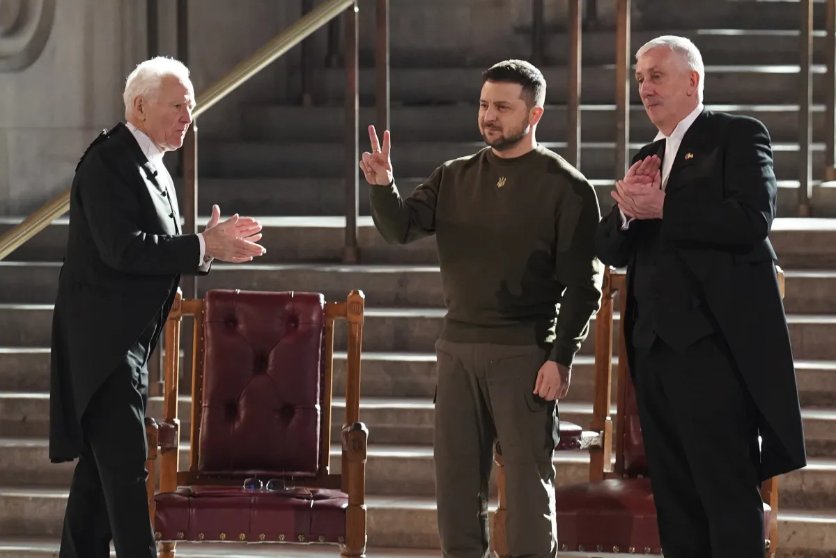 जेलेंस्की ने पश्चिमी देशों के सांसदों को ऐसे भाषण देकर बार-बार अपने देश के लिए समर्थन जुटाया है। यूक्रेनी राष्ट्रपति बुधवार को रॉयल एअर फोर्स के एक विमान से लंदन पहुंचे। ब्रिटेन के प्रधानमंत्री ऋषि सुनक ने यूक्रेनी नेता का स्वागत किया और उन्हें गले लगाते हुए एक तस्वीर ट्वीट किया। जेलेंस्की ने इंस्टाग्राम पर कहा, ‘‘यूक्रेन की मदद के लिए सबसे पहले आगे आने वाले देशों में ब्रिटेन भी शामिल था और आज मैं ब्रिटिश लोगों का उनके समर्थन के लिए निजी रूप से आभार जताने के लिए लंदन में हूं।’’ यह यात्रा ऐसे वक्त में हुई है जब ब्रिटेन सरकार ने छह संस्थाओं के खिलाफ नए चरण के प्रतिबिंधों की घोषणा की। ब्रिटेन का कहना है कि इन संस्थाओं ने रूसी सेना को उपकरणों की आपूर्ति की। जेलेंस्की को डर है कि 24 फरवरी को यूक्रेन पर हमले की बरसी पर रूस कीव पर बड़ा हमला कर सकता है। ऐसे में वह फाइटर जेट और एयर डिफेंस सिस्टम मांगने के लिए ब्रिटेन समेत दुनिया भर से समर्थन जुटा रहे हैं।