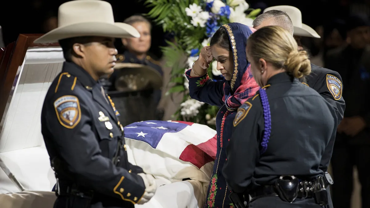 ह्यूस्टन: अमेरिका के ह्यूस्टन में पिछले हफ्ते ड्यूटी के दौरान मारे गए पुलिस अधिकारी संदीप सिंह धालीवाल के अंतिम संस्कार में हजारों की तादाद में लोग शामिल हुए। पुलिस अधिकारियों, सिख समुदाय के लोगों, भारतीय मूल के अमेरिकियों और ह्यूस्टन इलाके के निवासियों समेत हजारों लोगों ने बुधवार को उन्हें श्रद्धांजलि दी। 42 वर्षीय धालीवाल हैरिस काउंटी के पहले सिख डिप्टी शेरिफ थे और पूरे इलाके में काफी लोकप्रिय थे। आपको बता दें कि हैरिस काउंटी में सिखों की आबादी 10,000 से अधिक है।