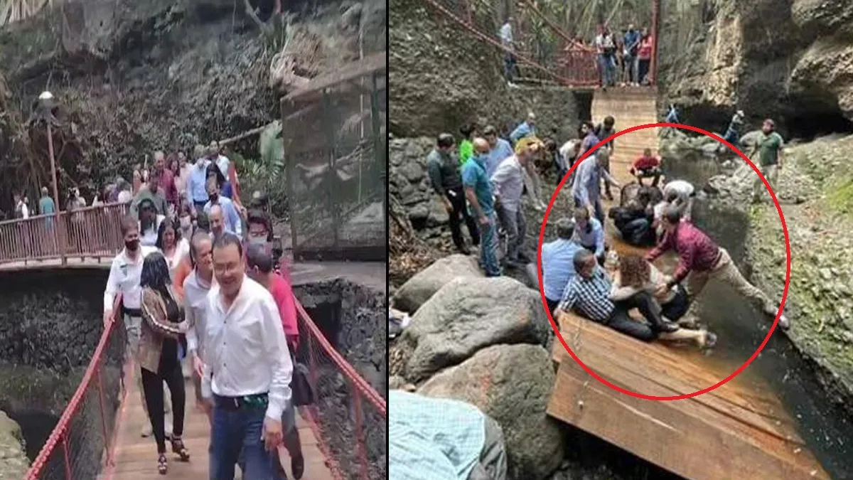 Footbridge Collapses: पुलों और सड़कों आदि के उद्घाटन के लिए ज्यादातर क्षेत्रों में किसी बड़े नेता या सेलिब्रिटी को ही बुलाया जाता है उसी तरह मैक्सिको के एक शहर में बने एक पुल के उद्घाटन के लिए शहर के मेयर और दूसरे अधिकारियों को बुलाया गया था। पुल के उद्घाटन के लिए शहर के मेयर और दूसरे अधिकारी पहुंचे थे। जब वे लोग इस पुल पर चढ़े तभी वह टूट गया और मेयर समेत करीब 2 दर्जन लोग नीचे नाले में गिर गए।