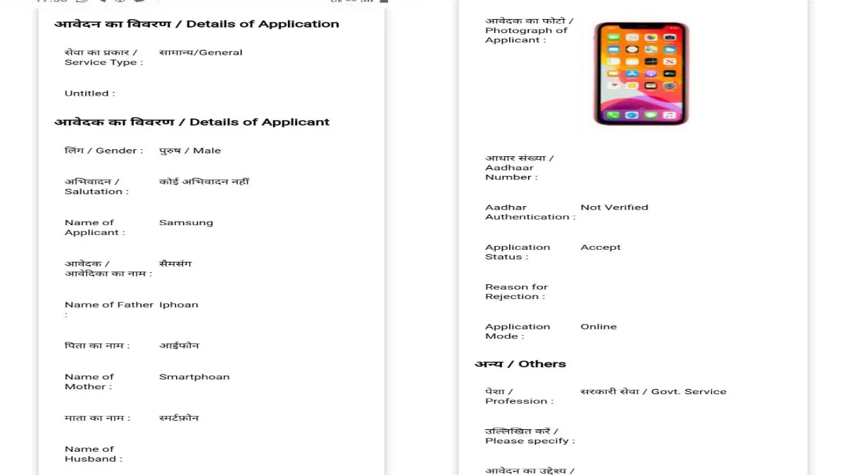 जहानाबादः बिहार में ऑनलाइन प्रक्रिया को मज़ाक बना देने वाले फर्जीवाड़े एक के बाद एक सामने आ रहे हैं। पहले पटना के मसौढ़ी में डॉग बाबू के नाम पर जारी हुए निवास प्रमाण पत्र का मामला अभी पूरी तरह शांत भी नहीं हुआ था कि अब जहानाबाद के मोदनगंज प्रखंड में एक और फर्जीवाड़ा सामने आया है। इस बार मामला और भी चौंकाने वाला है। दरअसल, मोदनगंज प्रखंड कार्यालय को एक आय प्रमाण पत्र के लिए ऑनलाइन आवेदन प्राप्त हुआ, जिसमें आवेदक का नाम सैमसंग, पिता का नाम आईफोन, और माता का नाम स्मार्टफोन दर्ज था।